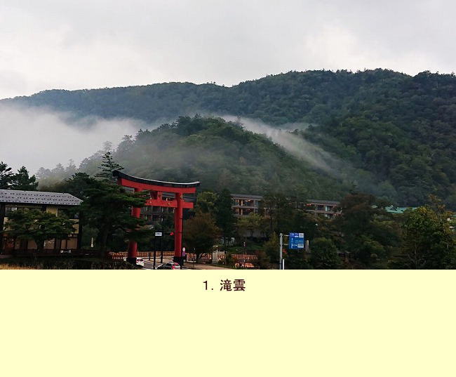 滝雲は、自然現象であって、一般に見られる時期は初秋から11月上旬で日の出頃がみどころといわれています。比較的条件がそろっていても滝雲が発生しない日もあるといわれている。また雲だけに”運”も重要と言われていますが、先日の夕方、ガイドの帰りに中禅寺でその”運”に出会えはじめて画像に収めることができました。華厳の滝から舞い上がった霧雲が山間に登り寒暖差の影響で「滝雲」となって中禅寺湖方面に流れ落ちる現象です。